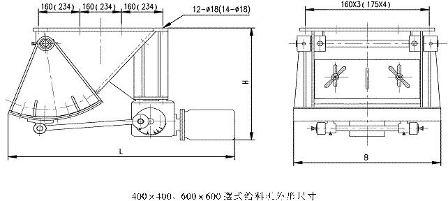 擺式給料機(jī)由殼體、弧板、鄂板、驅(qū)動(dòng)裝置、閘板等組成,當(dāng)電機(jī)開動(dòng)后經(jīng)減速機(jī)、曲柄連桿機(jī)拖動(dòng)弧板做圓弧往返運(yùn)動(dòng),將煤均勻地卸到其他設(shè)備上。